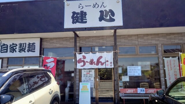 今日はらーめん健心さん。仕事でよく使う道路沿いにあるため、前々からずっと気になっていましたが、本日初訪問です。以前はベニバーズだったかのコンビニが入っていた建物ですね。