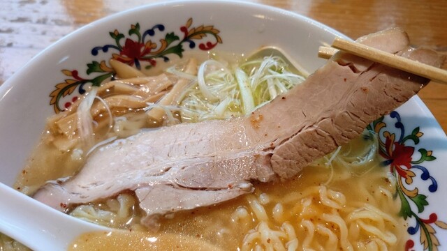 具材はと言うと、まずびろーんと横長のチャーシューが1枚。結構厚みもあり、柔らか仕上げで良いお味です。