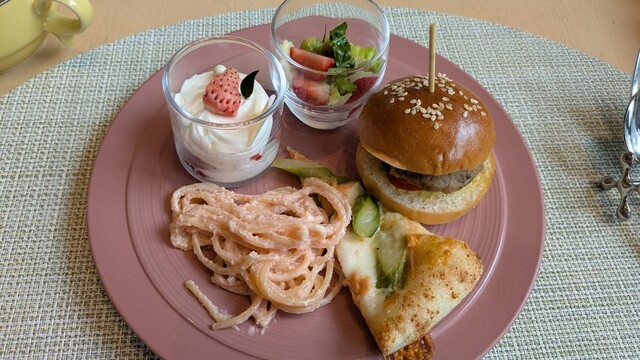 ランチブッフェでもあるので、パスタにピザ、ミニバーガー、スパイスカレーもある。
