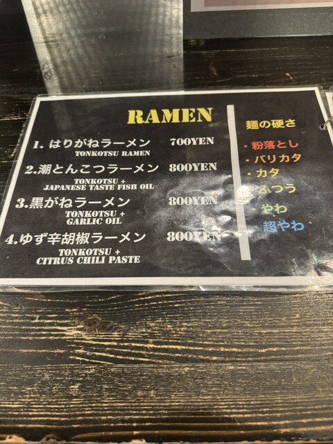 潮豚骨ラーメンは(たぶん)ほぼニンニク使ってない感じです。はりがねラーメンはグッとくるくらいニンニク使っててパンチがありますが、こちらは人と会う前にはおすすめです。