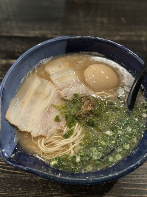 潮豚骨ラーメン800円+味玉150円麺硬めで注文しました。