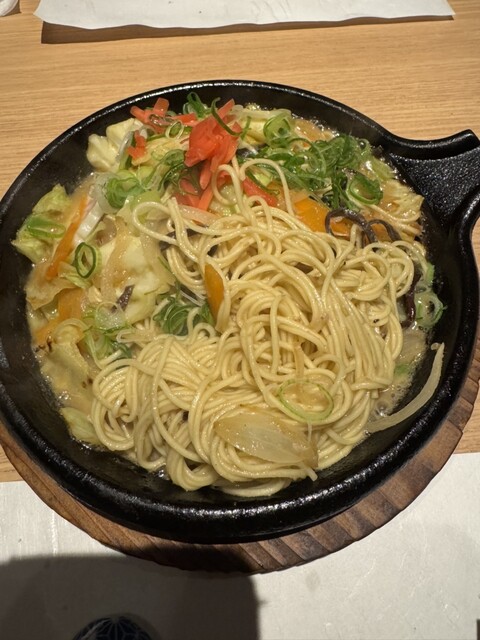 焼きラーメンも鉄鍋で提供されて、具沢山かつ熱々で美味しい!味付けも程よく屋台的な焼きラーメンよりも少し上品。締めにピッタリの絶妙なボリューム。