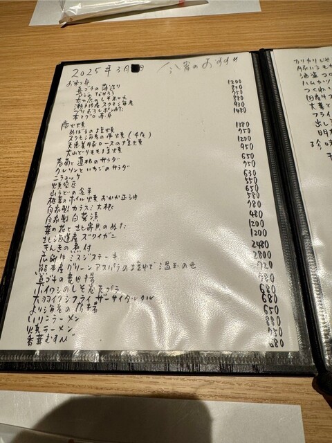 日付の入った今日のおすすめメニュー。仕入れによって提供される料理が変わるのかな?