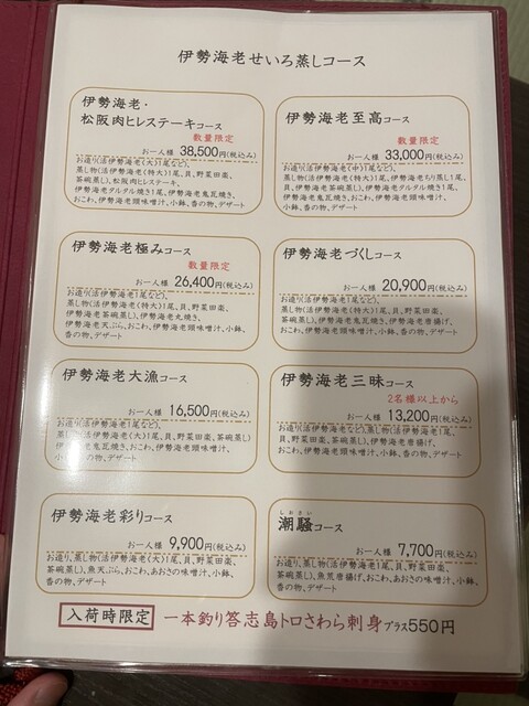 伊勢海老をいっぱい食べたかったので、たくさん食べられるコースを選びました。