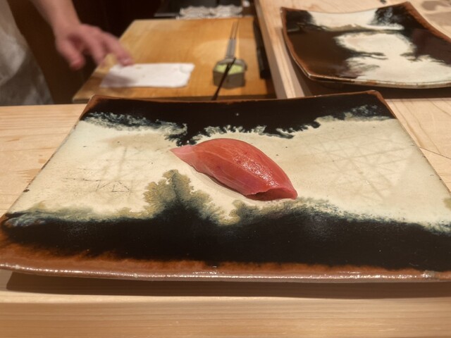 まずは中トロからお出迎え。シャリは粒が際立ち、赤酢との相性抜群。ネタは口の中で鮪のエネルギーが溢れ出す。今後のコースに胸膨らませるスタートに相応しい1貫。
