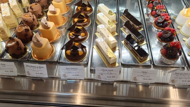 テイクアウトで3品、写真順に①ガトー・バニーユ、②ル・シュプレーム、③コム・ニューヨーカー。①は店員さんによると2番人気らしい。バニラ味で甘さ控えめ、下の生地はすこし硬めで合わせて口にいれると絶妙な感触。素晴らしい。②は濃いめのベリー風味のチョコムース。4面チョコの壁に囲われていてかわいらしい。ベリーもよく合いなかなかの新感覚だった。③はレモンがよく効いたチーズケーキ、さっぱり感あり、万人受けしそう。大体1個700〜900円以内かな。このお店はレベル高いと思った。