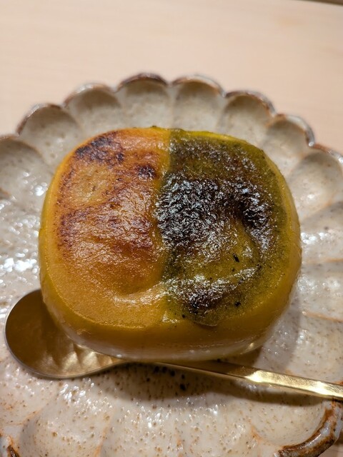 子持ち鮎の焼き物、なんか色んなとこで見る様なやつじゃん?と思ったら、塩味だけじゃなく、ほのかに甘味も感じるし火入れも素晴らしかった。