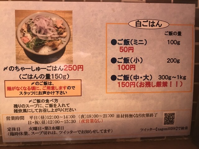 最新の情報とは異なる可能性がありますので、お店の方にご確認ください。詳しくはこちら