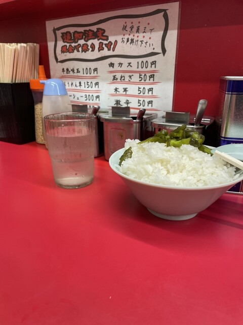 並ラーメン、無料ライスを注文