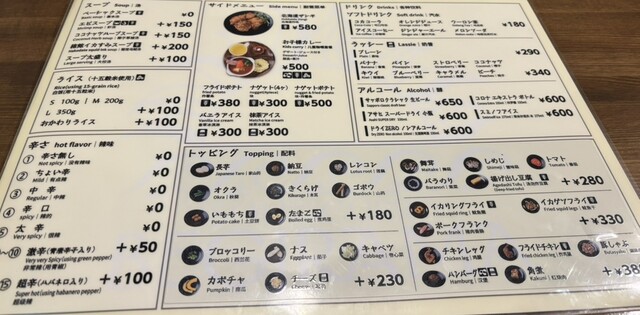 辛くしたい気持ちがいつもよぎるが、無理をしない辛さが1番良いと我慢して、いつものように上からひとつレベルを落とした辛口④(オプションで辛さは上に10以上あるようだ)とした