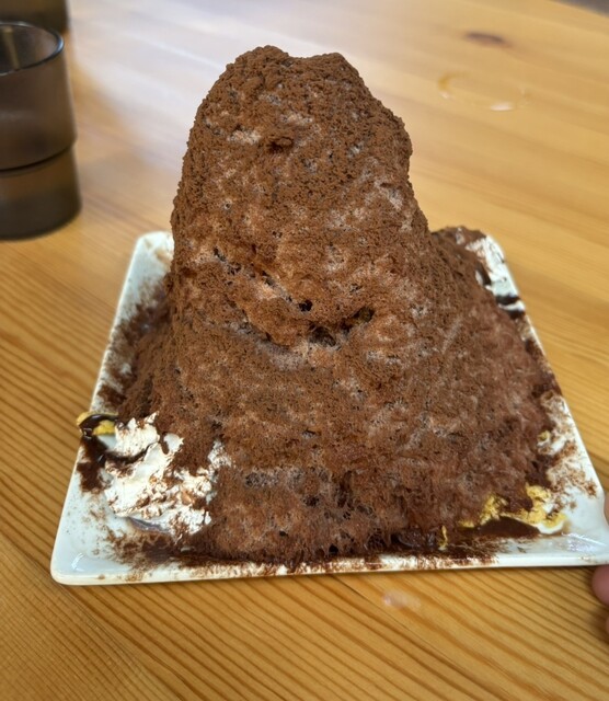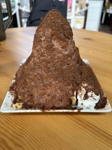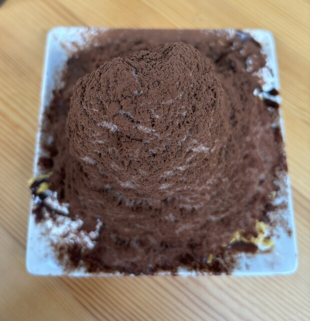 こちらもうまいが、少しココアパウダーが多すぎる印象。大は小を兼ねると常日頃から考える方だが、本来の氷のよさが少しわかりにくくなるような気もする。ただ、見た目はたくさんかかっている方が美しく見えるので、どちらがいいかわからない。