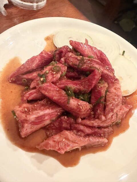 最初に出てきた牛タンは、にんにくたっぷりで香ばしく、思わず「美味しい!」と声が出るほど。