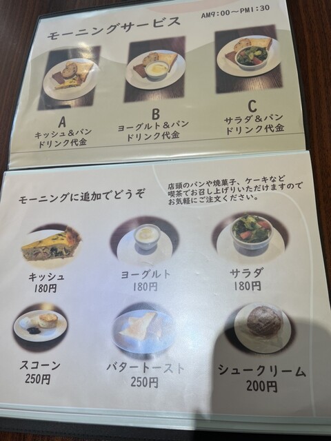 以前は11時までだったモーニングサービスが、現在はランチの食事メニューを中止して、13:30オーダーストップでモーニングを提供しています。