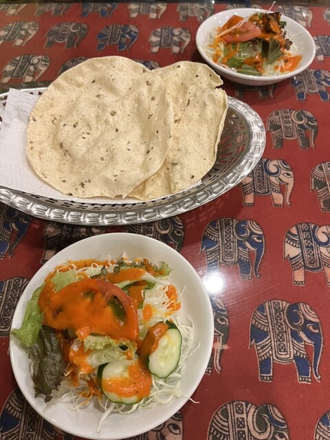 暫くすると、接客のお姉さんがパパドとサラダを運んできました。