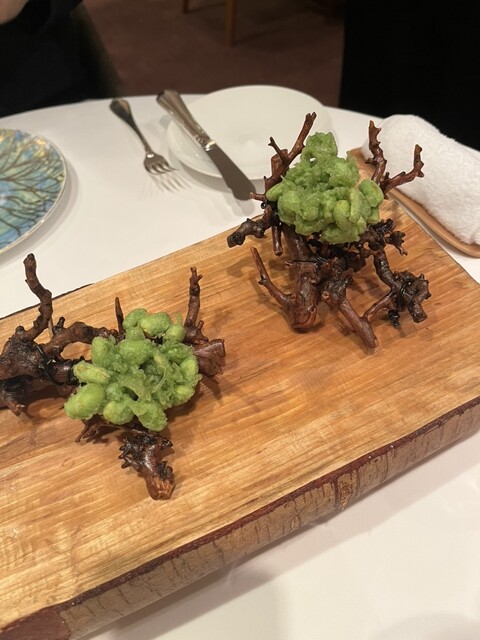 下にはイカ墨のソースがあり、鮑の力強い旨みがイカ墨に負けず、お互いの旨みが中和していました。