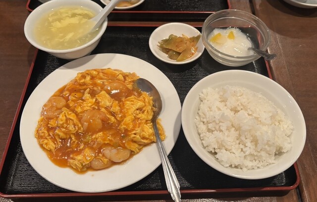 今回はたまご入りエビチリソース煮を注文。