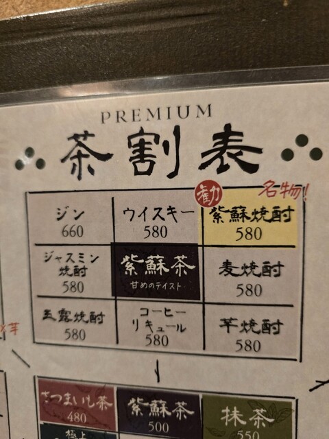 茶割りは、とうもろこし茶+ジン、抹茶+コーヒーリキュールを注文。とうもろこし茶の甘みとジンの相性が良く飲みやすく、抹茶とコーヒーリキュールは見た目も美しく、苦味同士が重なり想像以上の美味しさでした。店内はカウンター、テーブル、掘りごたつ座敷があり、一人飲みからグループまで幅広く使える一軒。お酒も料理も満足度の高いお店です。