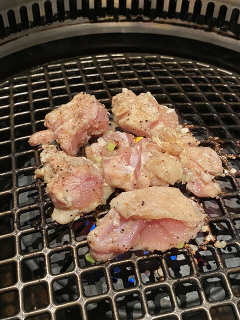 焼肉と言えば、和牛カルビと炙り焼きロース。他には塩鶏、上ホルを追加したよ。どれもこれも美味しいね。和牛カルビをご飯の上にのせてガッツリいただきました。焼肉とご飯はやっぱり美味しい。