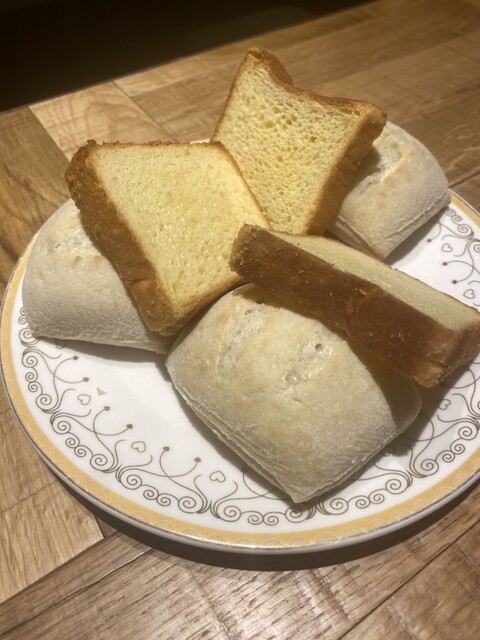 予約してきましたので、ゆったりしたテーブル席に案内してもらいました。棚にはワインがズラリ。さすがフレンチのお店という感じだね。