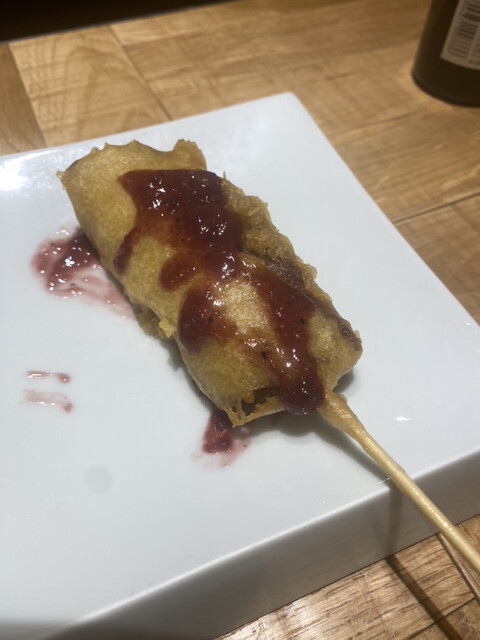 お次はフレンチ串揚げなどなど。牛肉と甘鯛のベニエ。海老とホタテのカダイフ包み。外側はサクッと内側にしっとり、どれもこれもおいしい。