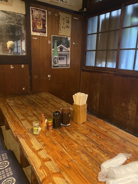 平日の夜でしたが、お店の前には並んでる人あり。予約してましたので、すんなり入店。店内に入るとまたまた感激だね。この雰囲気いいね。テーブル席に座敷があちこちにあるね。壁には大きなメニューがずらり。店内はほぼ満席だけど、この雰囲気は落ち着きますね。
