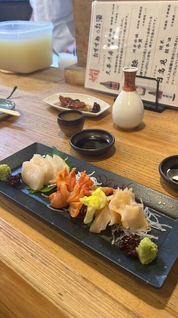 生牡蠣は大きくて美味しい!通常ポン酢をつけると思うのですが、味がついてるのでこのまま食べてくださいと言われそのまま食べました。正直ポン酢は欲しかったです笑