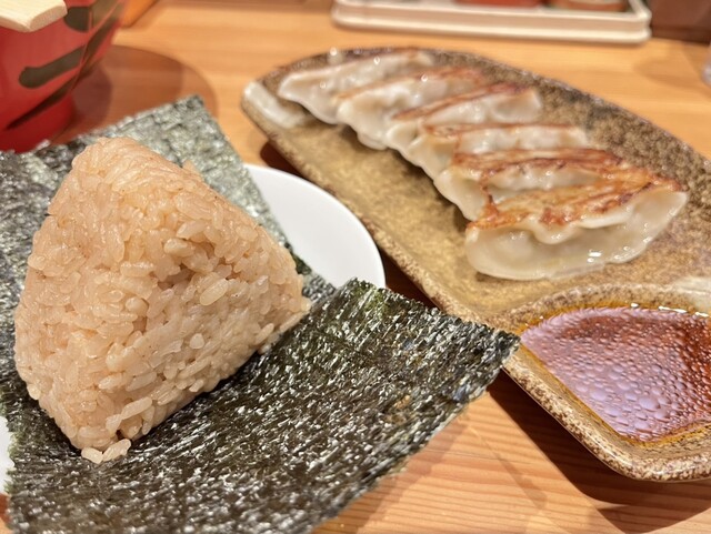 所用で新宿へ出かけた今日は、お腹が空き過ぎてコッテリしたラーメンを食べたくなり、えびそば一幻へ訪問。券売機でのオーダーは、えびみそ大盛り(1,140円)で、スープはとんこつをブレンドした「あじわい」をチョイス、サイドメニューからは、えびおにぎり(250円)と餃子(490円)。
