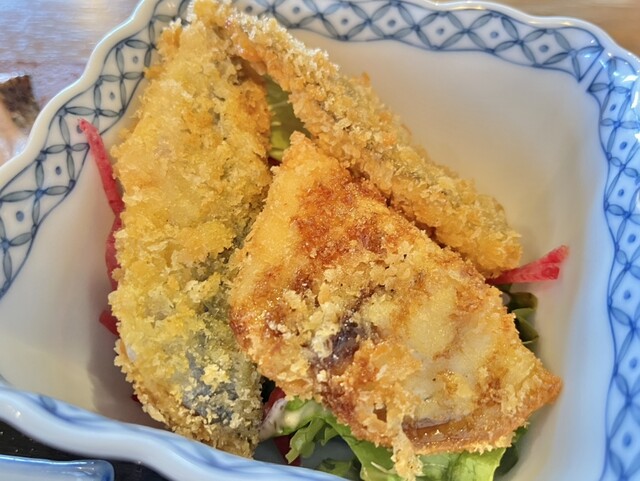 オーダーはよくばり定食(2,500円)からメアジの煮付け。刺身はイトヒキアジ、ウツボ、ヤガラ、メジナ、メジマグロ。フライはサワラ、サバ、ミズカマス。相模湾の地魚が刺身、フライ、煮付けと満載。普段は味わえない魚をいただけるのはテンションあがります。