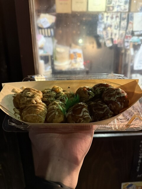 店主さんが最高すぎます。店横で食べてたら、まさかのサービスで追加たこ焼きくれました。気前よすぎます、、、