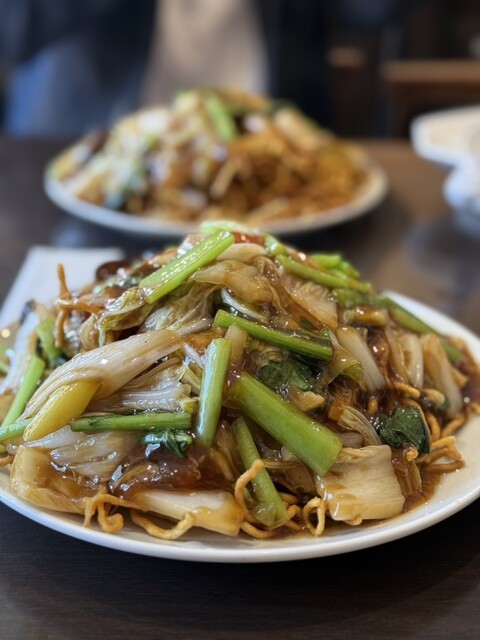 ここはやっぱりカタヤキソバが美味しい。何度も通っていますが、初めて行く人は絶対カタヤキソバを食べるべき。ボリューム満点塩分満点です。海老・うずら・きぐらげ・白菜など、具沢山の醤油餡とカリカリに揚げてある麺が絡み合って絶品です。