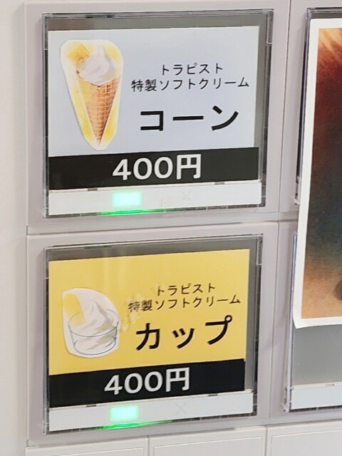 カップかコーンを選べるけど、クリームとコーンにはトラピストバターが使用されてるようなので、せっかくならコーンで食べておいた方が良いかも。