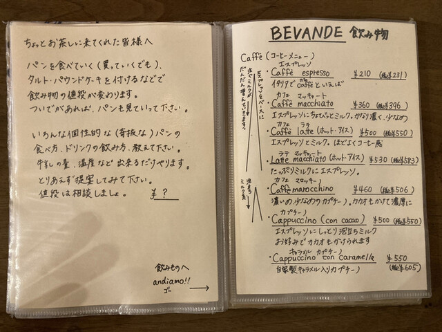 パン:チャバタ、ドリンク:ラテマッキャート