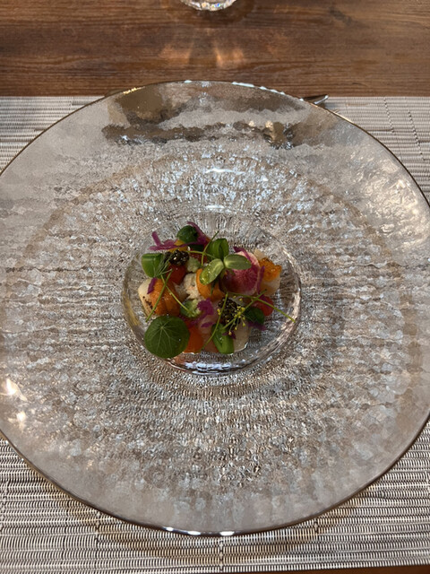 シェフは元ポートピアホテル、アランシャペルの料理長の方で愛想良く面白い方でした。目...
