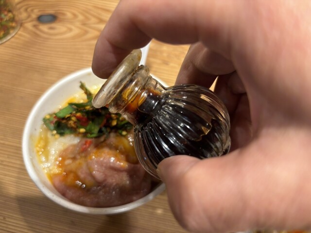 これに生卵を好きなだけぶっかけられるのだ。さらにピリ辛ふりかけもぶっかけるのだ。醤油持して味を増すのだ、美味いのだ。旨いのだ。