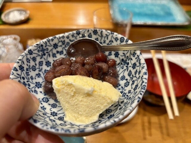 最後のデザート、小豆アイスクリームもまたたまらん。