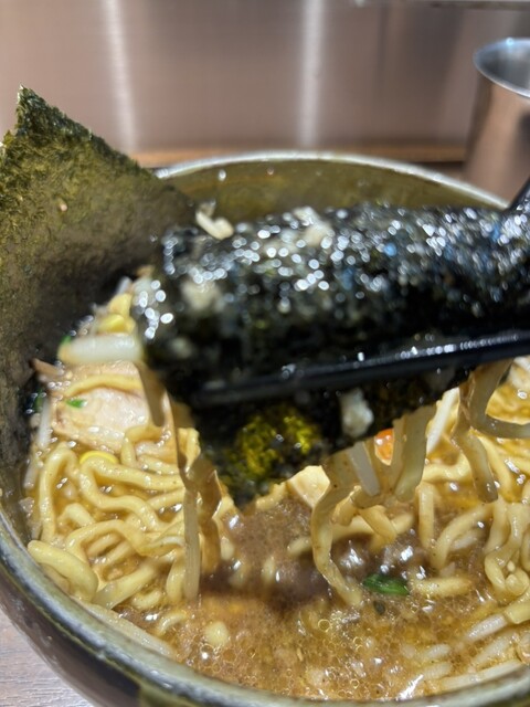 味玉と良く合い、パリパリした海苔と絡めて美味しい。