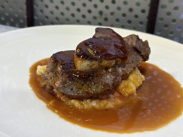 ワタリガニのトマトクリームスパゲティと牛フィレステーキフォアグラのせを食べました。
