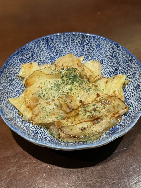 ・三代目ポテトサラダ ・季節の焼き魚(桜鱒の山椒焼き) ・キャベツの酒盗炒め