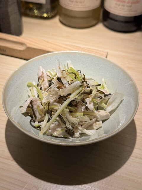 ・島らっきょとささ身の塩昆布和え