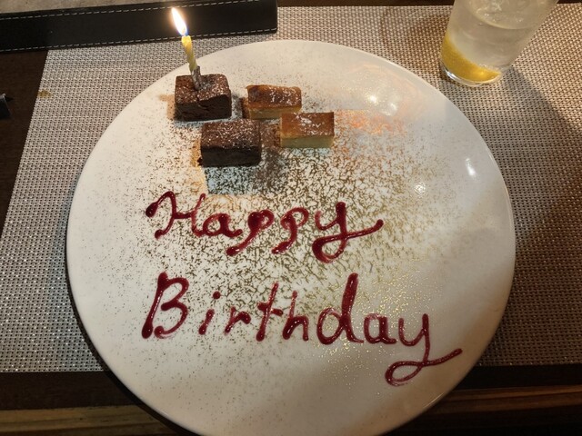 誕生日プレート 花火とロウソクだったそうですが、花火は辞退したと笑