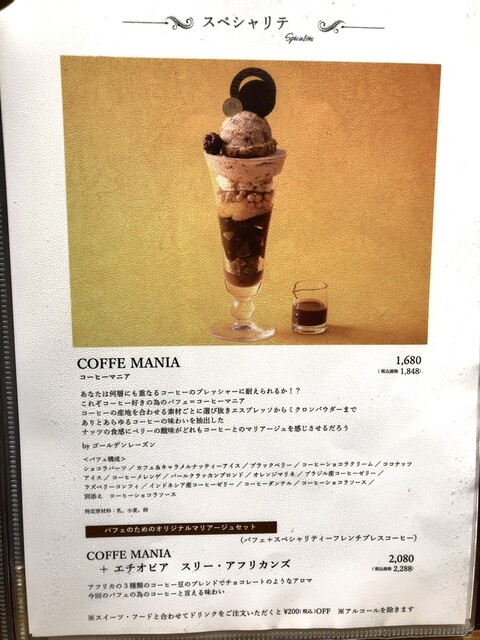 メニューの文言に惹きつけられ、コーヒーマニアを注文しました。