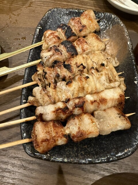 やきとんと焼き鳥をつけて食べるちょっといいですね。