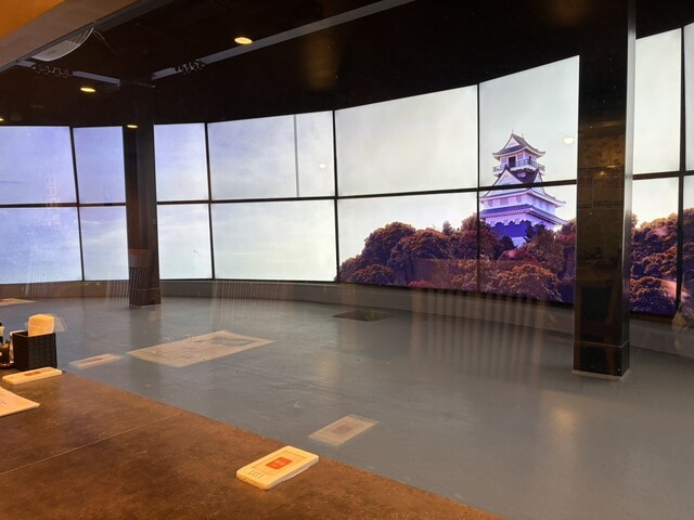 美味しいうなぎ屋さんでランチ。通された席はテーブルではなく大型モニターが目の前に並んでいるカウンター。モニターには四季が変化する風景や大型魚が泳ぐ水族館、そして迫力ある大波が動く葛飾北斎の「富嶽三十六景」など注文を忘れて見入ってしまいそう。