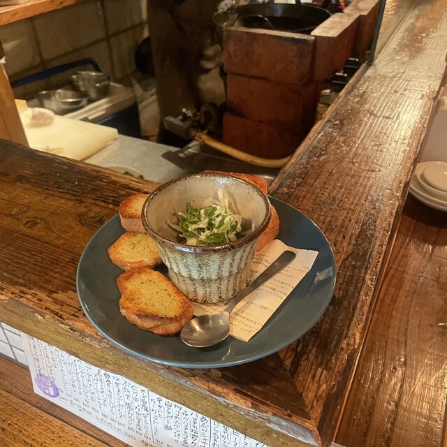 初めての東京のおでん 甘めで味濃いめ すき焼きに近いような感じだった だけどこれはこれで美味しかった カウンターで厨房を囲んだこぢんまりとした店内 ネギトロをバケットに乗せて食べるやつが新しい出会いでヒット