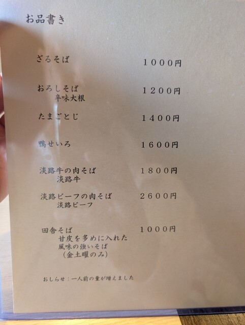ざるや、おろし等の冷たいそばのおかわりが、若干変更されてて、以前は2杯目(おかわり)が、200円引きで後から盛りとつゆや薬味が追加されて提供されていたのですが、そのシステムが無くなりました。