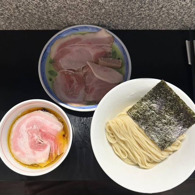 つけ汁内のチャーシューの香ばしさ、後半はほのかなニンニクの風味も合わさって良き
