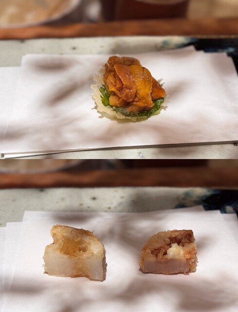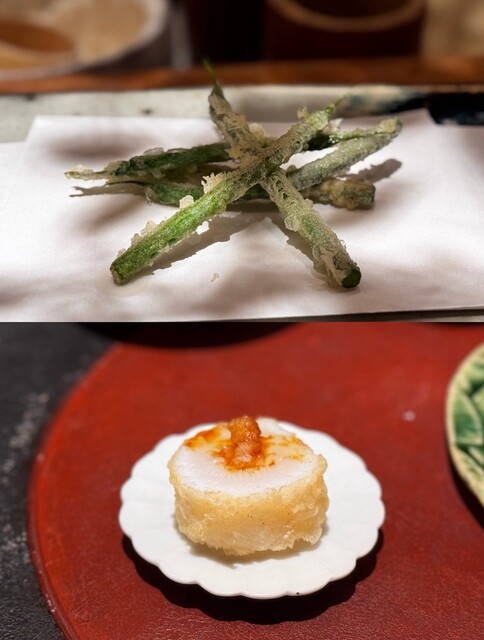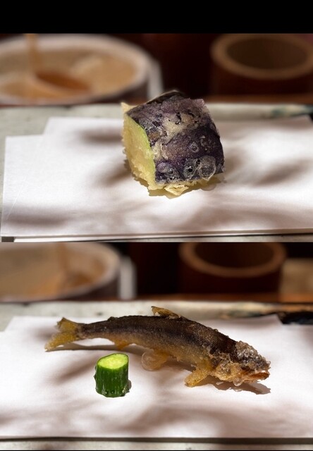 ミシュラン二つ星の名店で、店主・元吉和仁氏が科学的手法で天ぷらの常識を刷新。液体窒素で小麦粉を極冷し、素材ごとに弱酸性/中性の水を使い分ける独自技法で、衣は軽くサクサク、素材の甘みを最大限に引き出す。特に夏季の「角もろこし」(四角いトウモロコシ天ぷら)はインスペクター絶賛の逸品。