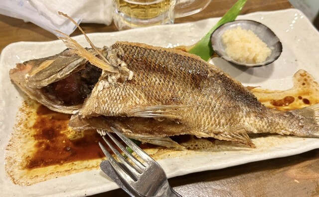 フエフキダイのバター焼きを頼んだのですがこのデカさ、そしてこれで1000円しないってどういうこと。笑