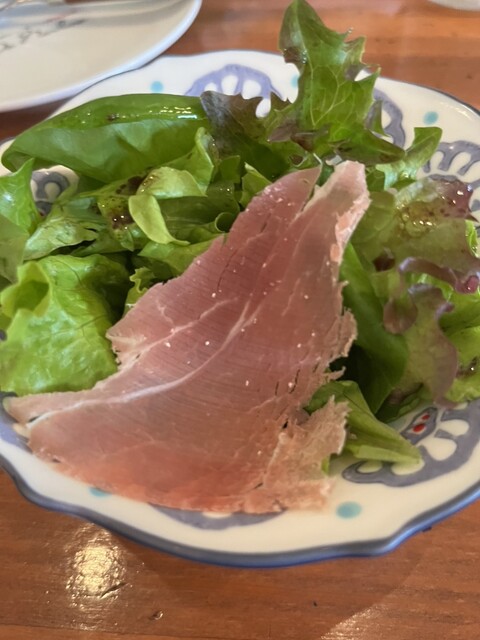 バルサミコ酢のドレッシング ちょうどいい酸味 また生ハムが美味い