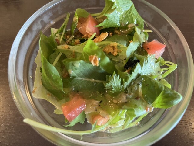 市販のドレッシングでもドレッシングが美味い 小さなオニオンフライもいい 美味い